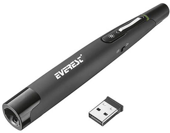 Everest Presenter - PSN-12 (Vezeték nélküli, 15 méter hatótáv, 2.4Ghz, vörös lézer, Plug & Play, fekete) PSN-12 Típus: Vezeték nélküli 2,4 GHz Hatótáv: 15 méter Észlelés: optika USB csatlakozás Gombok száma: 4 Típus: PC / Tablet / Notebook Szín: szürke/fekete Driver: Plug and Play Leírás: Presenter, vörös lézer pointerrel